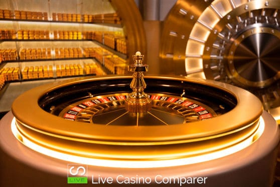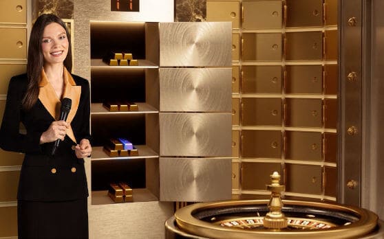 Gold Vault Roulette is set in a studio designed to look like a bullion vault in a bank.